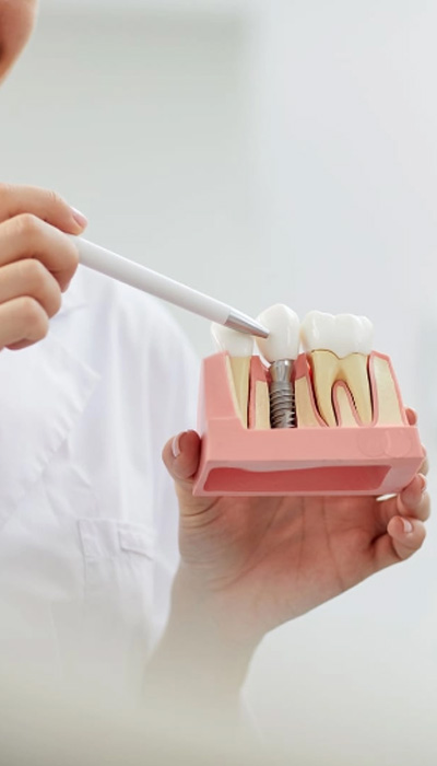 Gaps in your smile can dramatically affect self-confidence, with patients complaining they self-consciously cover their mouths or find it difficult to chew. So if you’re looking for a long- term, permanent and durable solution to improve your smile… implants might be the choice of treatment for you. Unlike dentures which are removable, dental implants are fused to your jawbone. Made from titanium, a biocompatible element which mimics your tooth root, and covered with a dental crown, dental implants are designed to go the distance. With the right care and maintenance, this tooth replacement solution can last a lifetime.